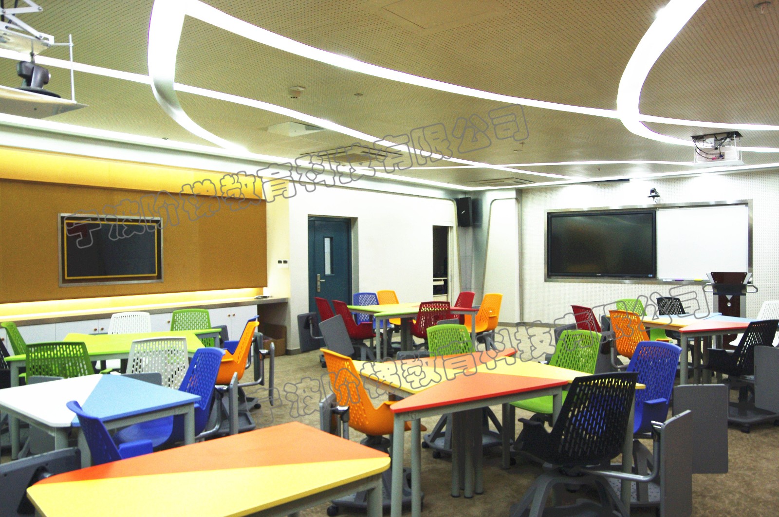 紅、橙、黃、綠、青、藍(lán),豐富多彩的配色、自由拼接的桌椅,這間讓人眼前一亮的教室便是甬江職高的錄播智慧教室,里面有液晶智能觸控交互一體機(jī)、專業(yè)講臺(tái)、投影機(jī)、投影白板、高清錄播系統(tǒng)、高清攝像機(jī)、互動(dòng)投屏機(jī)、物聯(lián)網(wǎng)控制器、自由拼接桌椅等,除了平常的直播、錄制、點(diǎn)播外,還有多屏互動(dòng)、數(shù)據(jù)自動(dòng)采集等校本資源的積累、共享功能,可用于各級(jí)各類共享課程、教師課堂教學(xué)評(píng)價(jià)、精品課程資源建設(shè)等,為學(xué)校師生提供了智能高效的教學(xué)環(huán)境。